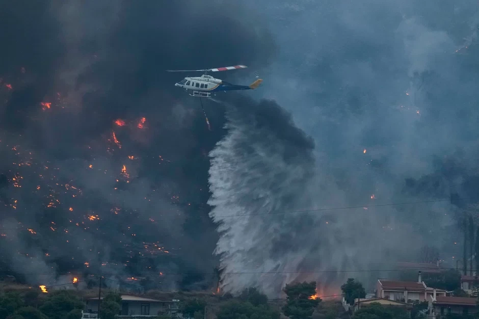 மேலும் கிரீஸின் ரோட்ஸ் தீவில் பற்றியெரிந்து வரும் காட்டுத்தீயை அணைக்கும் பணியில் ஈடுபட்டிருந்த விமானம் விழுந்து நொறுங்கியதில், அதிலிருந்த இரு விமானிகளும் உயிரிழந்தனர்.