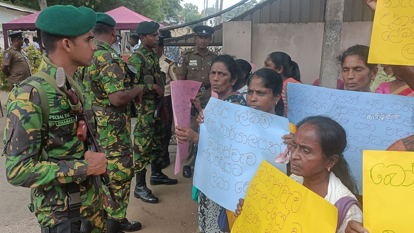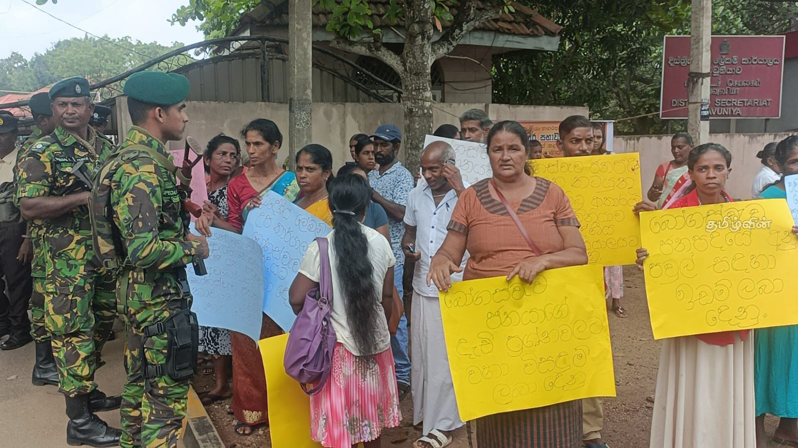 பிரதமர் தினேஷ் குணவர்த்தன வவுனியா மாவட்ட செயலகத்தில் இடம்பெற்ற மாவட்ட அபிவிருத்தி குழு கூட்டத்திற்கு வருகை மேற்கொண்டிருந்த நிலையிலேயே வவுனியா, போகாஸ்வேவ பகுதியினை சேர்ந்த மக்களினால் இந்த போராட்டம் இடம்பெற்றது.