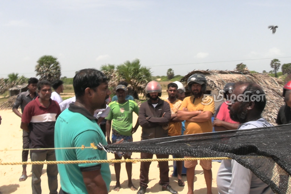 இதன் போது ஆவணங்களை பரிசோதித்த கடற்றொழில் பரிசோதகர் முறையான அனுமதி பெறவில்லை என்பதனை சுட்டிக்காட்டியதுடன் கடற்தொழில் சங்கத்தின் தீர்மானத்திற்கு அமைய உடனடியாக குறித்த இடத்திலிருந்து வெளியேறுமாறு பணித்ததுடன் உழவு இயந்திரம் பாவித்து கரைவலை தொழில் செய்ய முடியாதென தெரிவித்தார்.