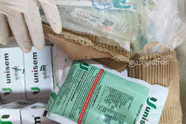 உச்சிப்புளி அடுத்த நத்தை குளம் கடற்கரையில் இருந்து இலங்கைக்கு படகு மூலம் கடத்துவதற்காக இரவு பதுக்கி வைக்கப்பட்டிருந்த இந்திய மதிப்பில் 36 லட்சம் மதிப்பிலான உரம், பூச்சிக்கொல்லி, அழகு சாதன பொருட்கள் உள்ளிட்டவை பறிமுதல் செய்யப்பட்டுள்ளன.