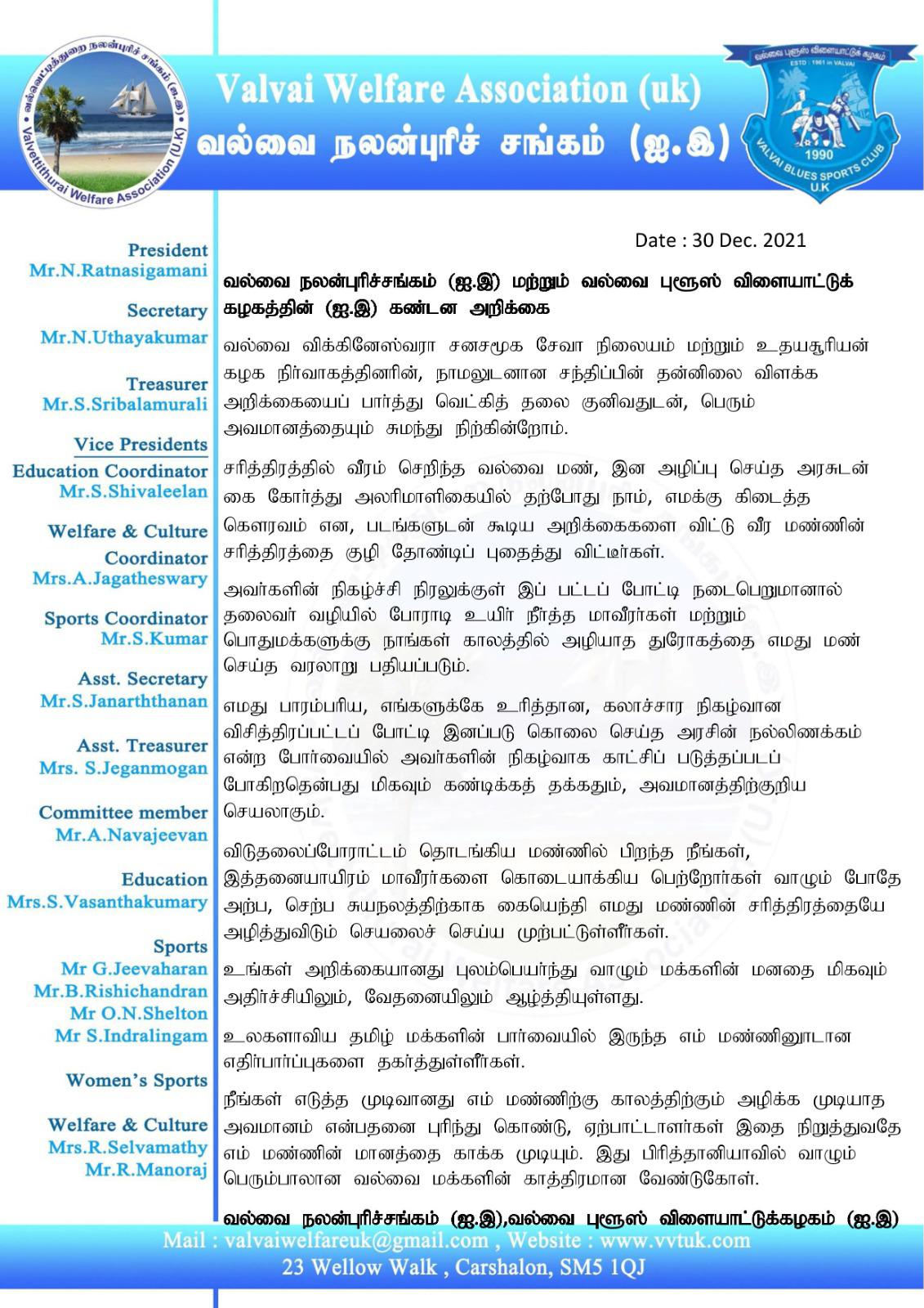இது பிரித்தானியாவில் வாழும் பெரும்பாலான வல்வை மக்களின் காத்திரமான வேண்டுகோள் என தெரிவிக்கப்பட்டுள்ளது.